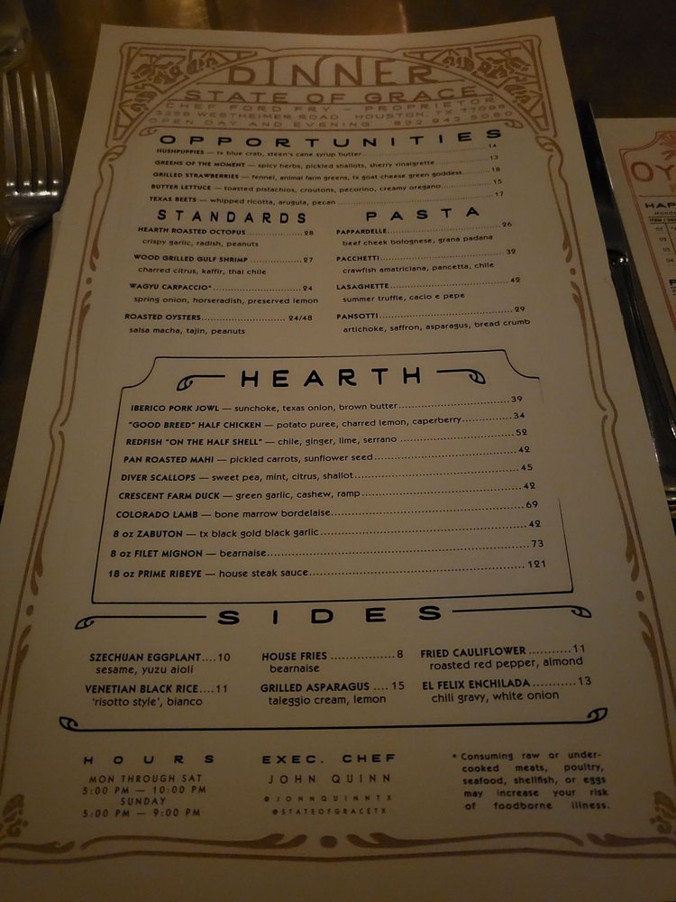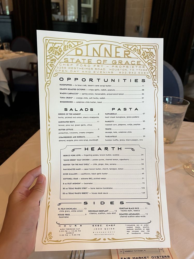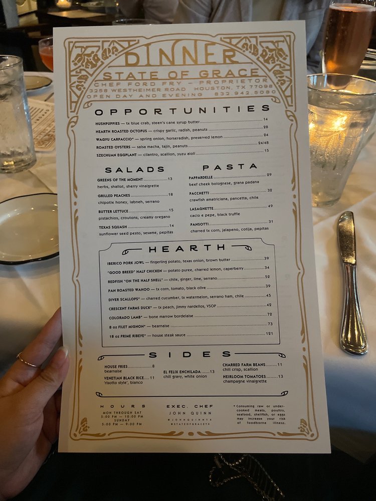 If you're looking for a trendy, upscale dining experience in Houston, look no further than State of Grace. This Southern-New American-Seafood restaurant offers a variety of options for all types of diners, including many vegetarian options. The menu features standout dishes like the Scallop Louisiana with citrus and kaffir lime, Wagyu Beef Carpaccio, and the Shrimp Crusted Flounder with field peas and bacon. The ambiance is classy, and the service is top-notch with options for both indoor and outdoor seating. Don't miss out on their happy hour specials and full bar offerings. State of Grace is a must-visit for those looking for a memorable dining experience in Houston.